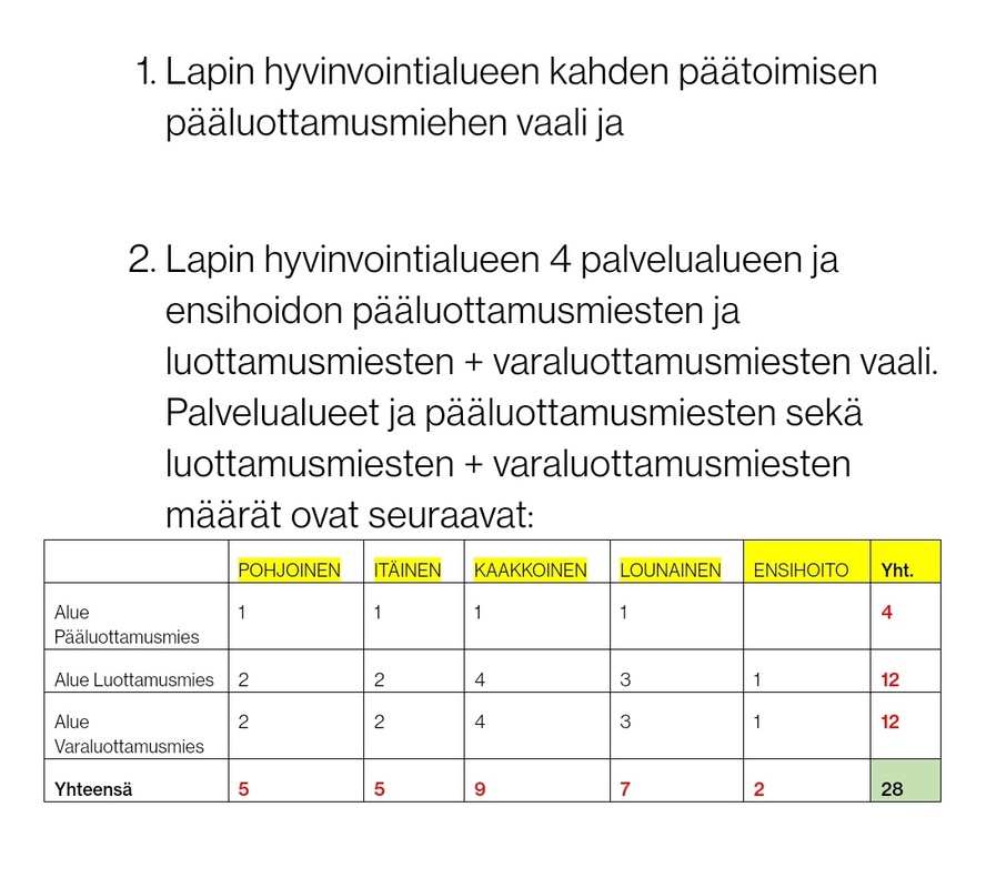 Lapin hyvinvointialueen ammattiosastot ovat päättäneet, että luottamusmiesvaalit pidetään kahtena erillisenä vaalina syys- ja lokakuun aikana. Vaalit ovat: